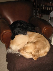 Did you know this week is National Dog Bite Prevention Week? And you’ll never guess who’s promoting it. Yep, the U.S. Postal Service. Here’s their press release. It’s actually pretty smart, because it’s such a common perception that mail carriers are afraid of, and get bitten by, dogs. There’s even a MacDonald’s radio ad running right now that says something about rewarding the “mailman who delivers to the Rottweiller kennel.” And if the tips they provide, such as don’t run, make eye contact or scream when approached by an aggressive dog, help save even one person from being bitten, it’s only going to benefit dogs in the end. Here’s a picture of two dogs in a state of total NON-aggression, one they are quite comfortable in, wouldn’t you say?