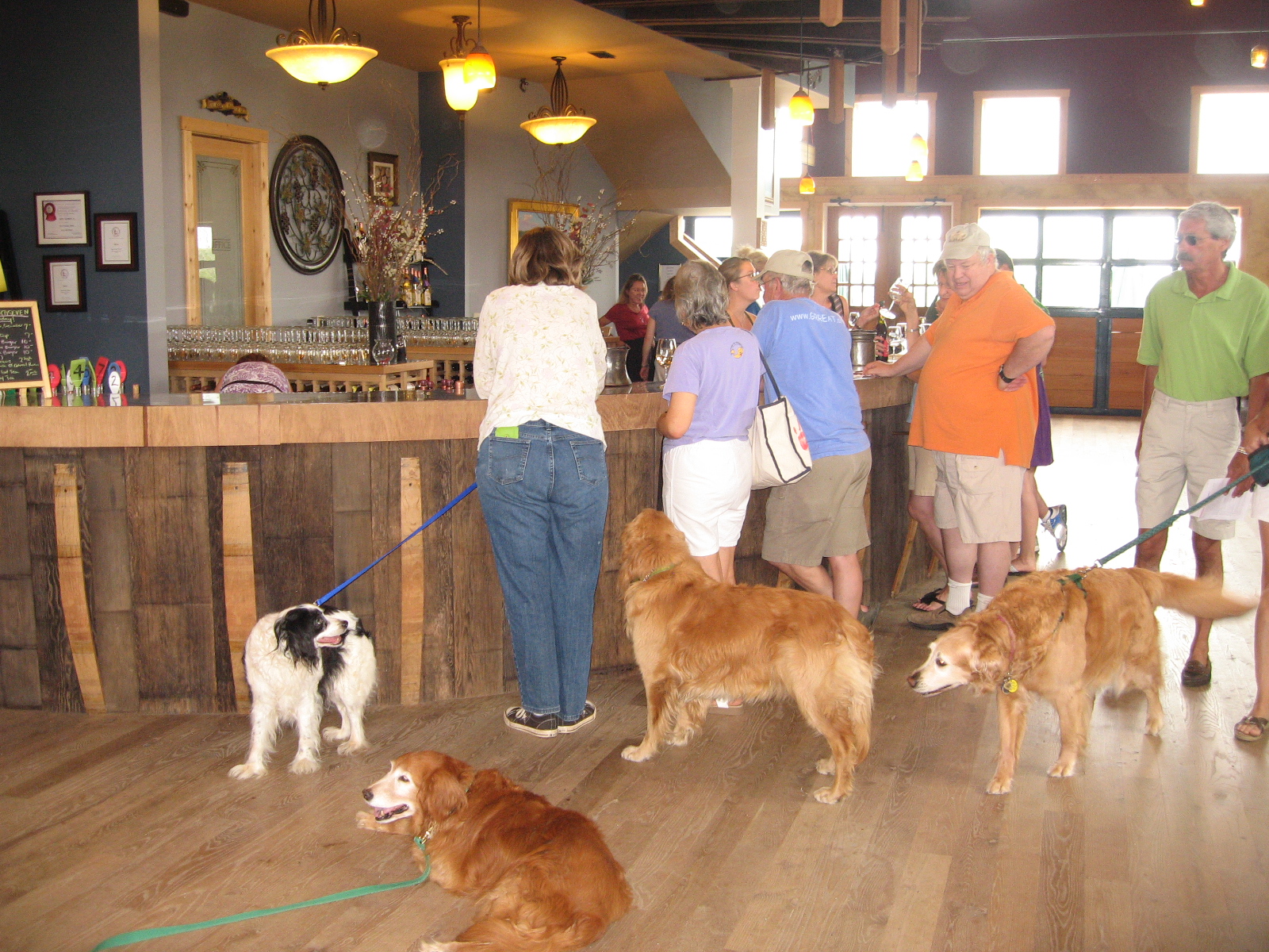 The owners have two Golden Retrievers, named Barley and Justice. According to their website, they have donated 10 cents from every bottle of wine they have sold to GRREAT since opening in 2008.