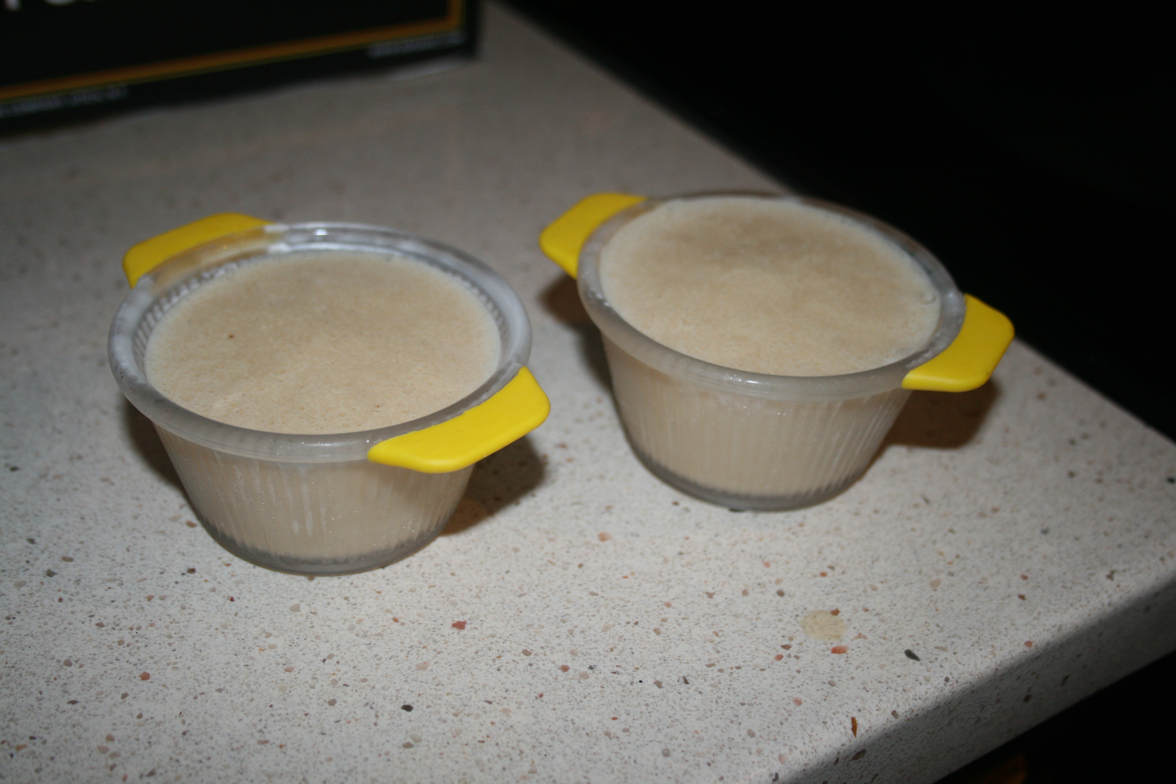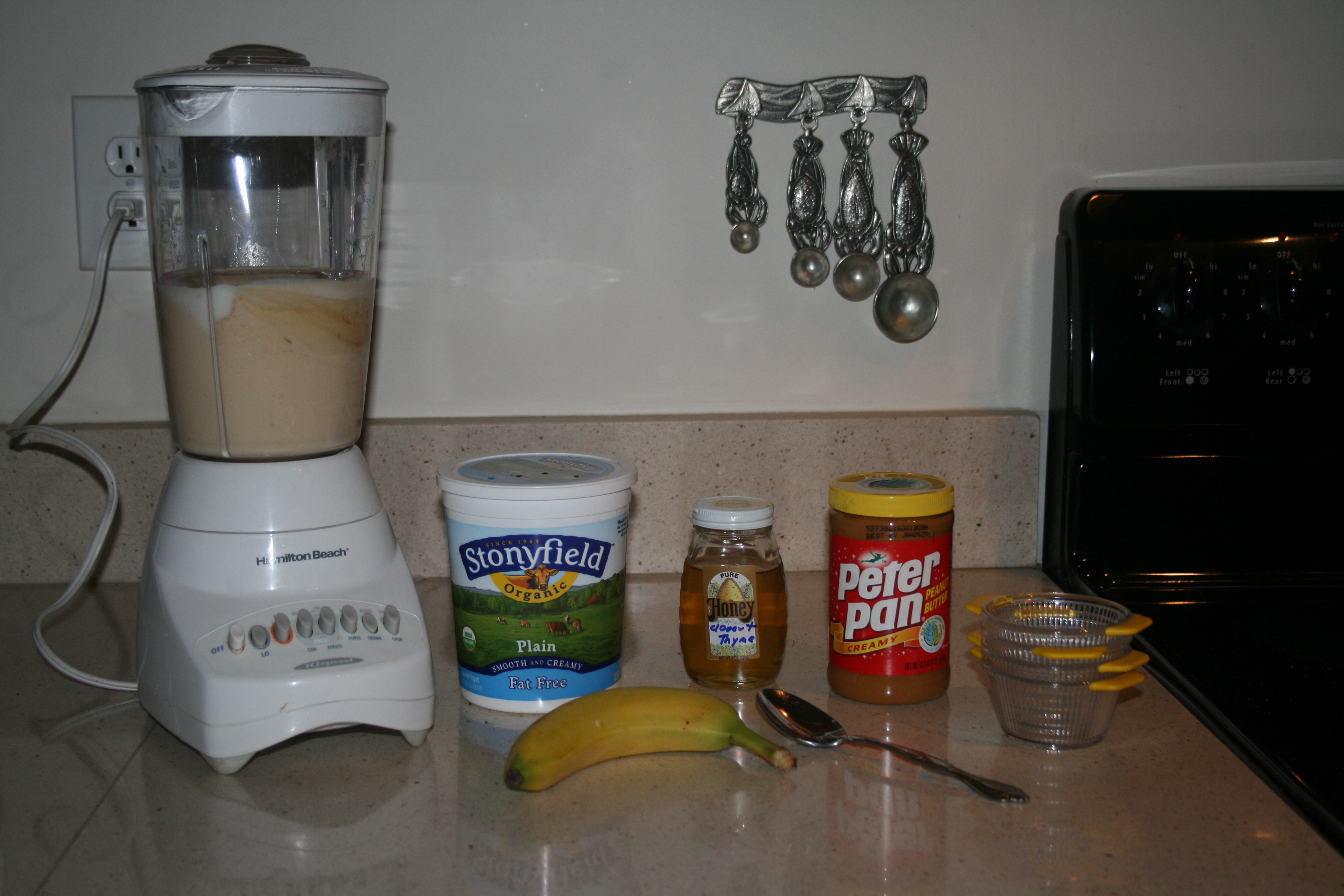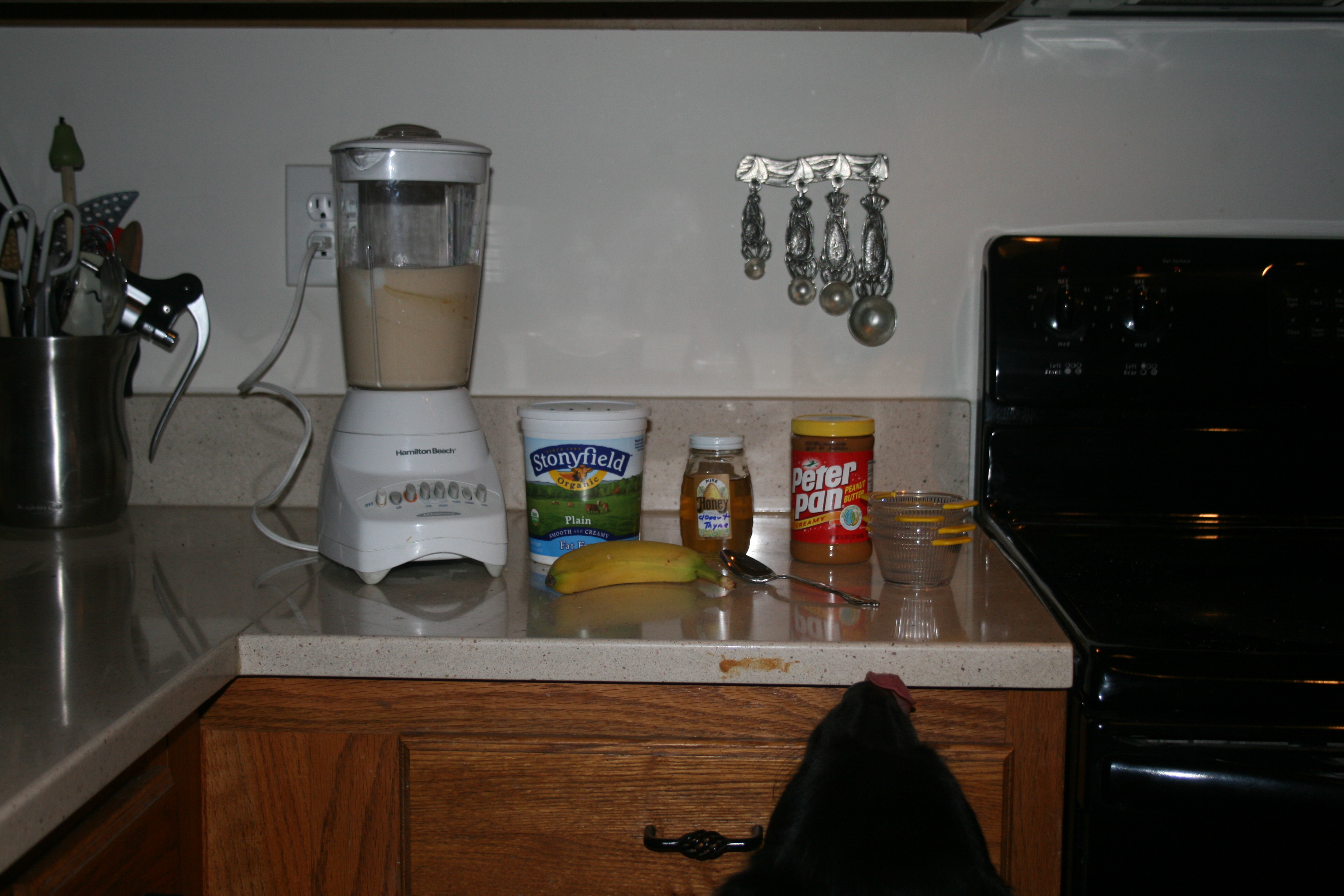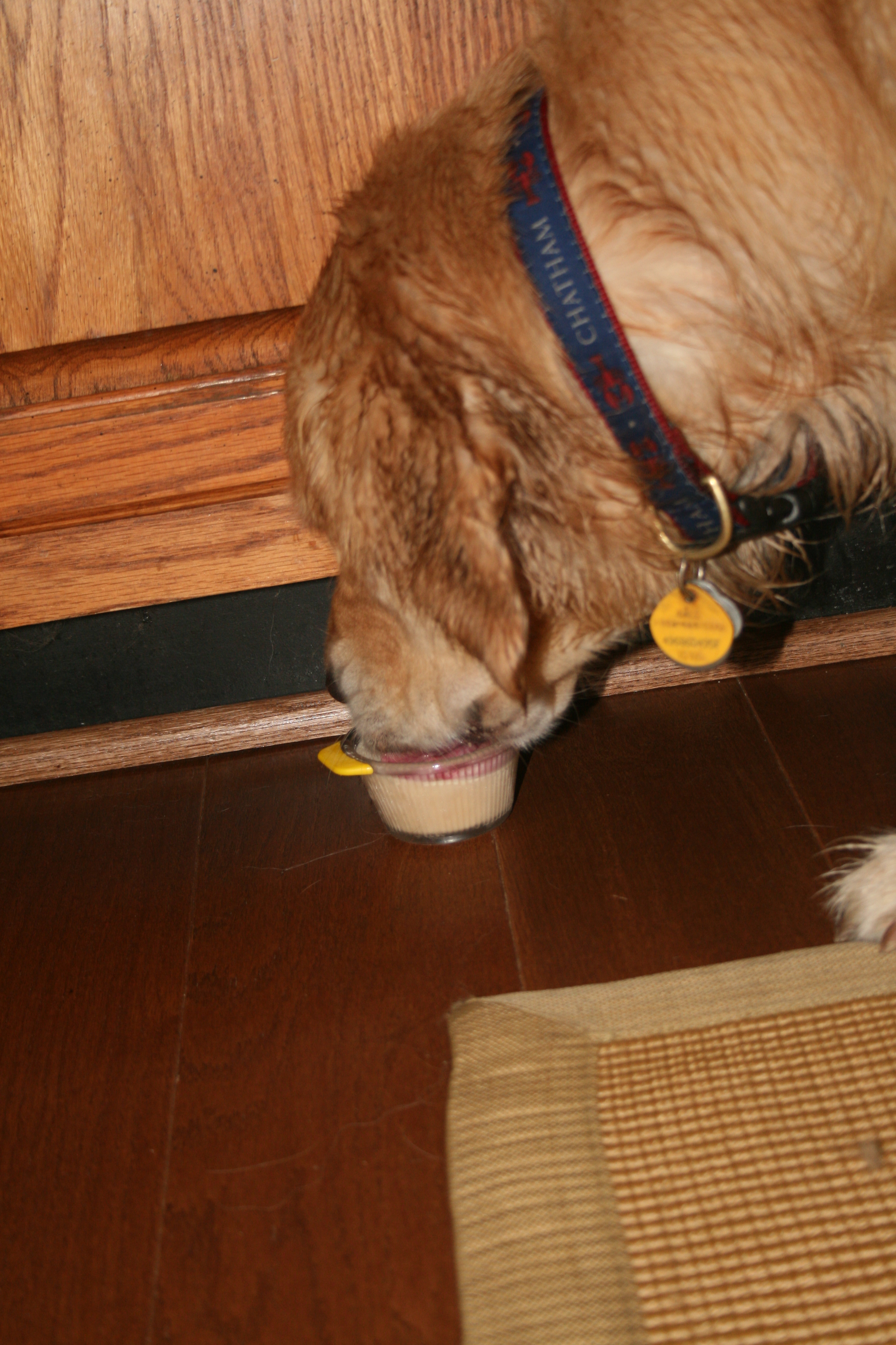 Chatham and Sundae are big fans of doggie ice cream, so for an end-of-summer treat I did some online searching and found a great recipe on CollarGirl.com. It has just four ingredients, and all you need is a blender, some cups and a freezer!