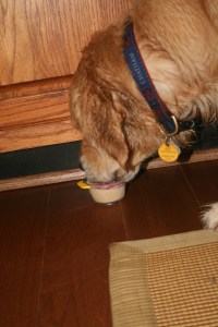 I bought the cups at a kitchen supply store at the Leesburg outlets, but I imagine Sur La Table, World Market or even Target would have them. They’re a thick plastic, dishwasher-safe, and shallow enough so the dogs can get every last bit of ice cream!