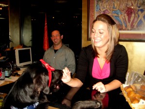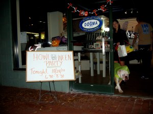 Dozens of costumed dogs and their owners converged on Dogma to make a donation and pick up their map of businesses participating in the event. The diners at the restaurants with outdoor tables got to enjoy the parade of angels, bumblebees, banana splits, fairies and more.