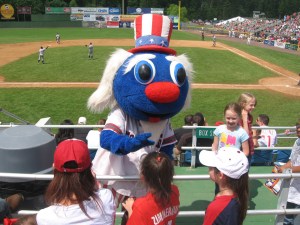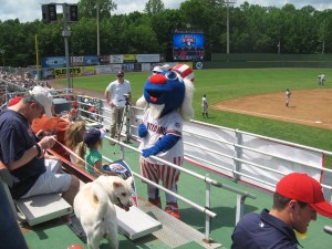 The only thing the pups didn’t care for was the crowd stomping their feet on the metal bleacher floors, which they did at key plays in the game. Even a visit from Uncle Slam, the P-Nats’ big blue blob of a mascot, didn’t faze them.