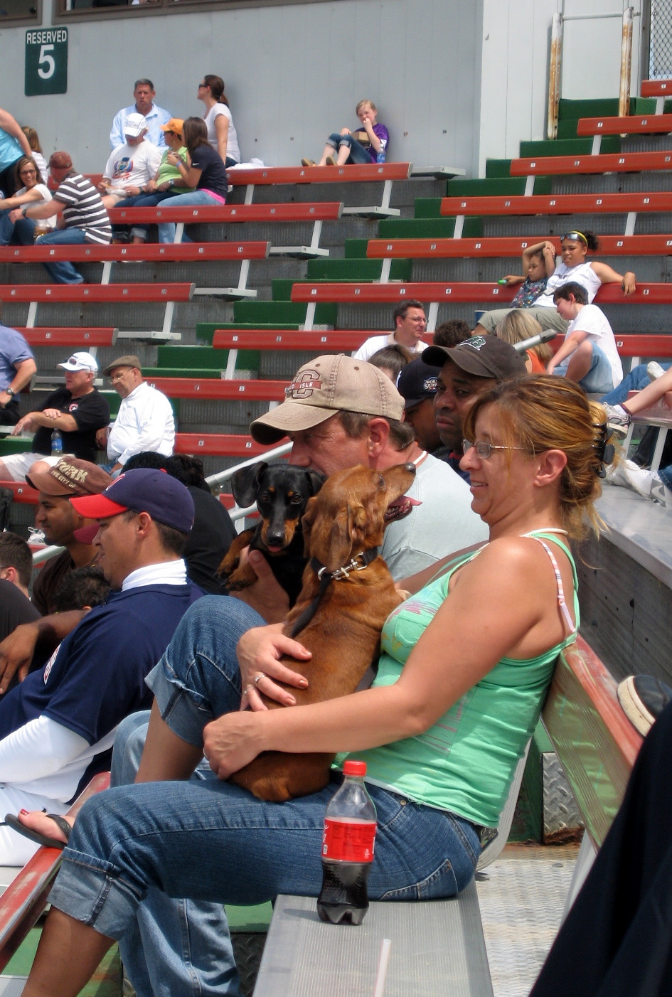 We saw a number of dogs enjoying the game, including a pair of Daschunds–a different kind of weiner dog than you usually encounter at the ball park!