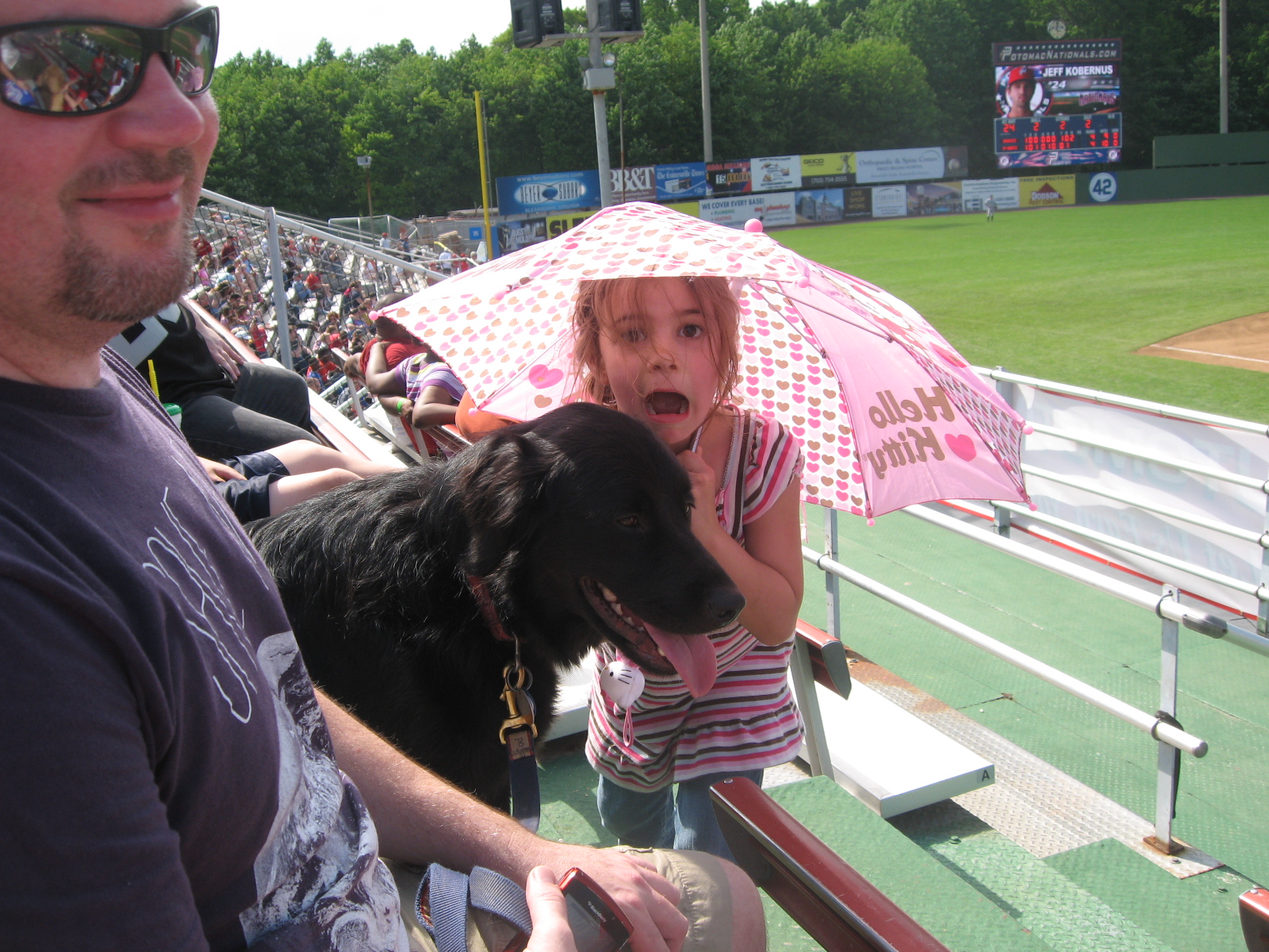 Luckily everyone sitting around us was dog-friendly, and the girls were the center of attention from children from the minute we entered the ballpark. One little girl ran to get her umbrella so she could provide shade for Sundae.
