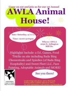 Then, stroll about a hundred yards down South Arlington Mill Drive to the Animal Welfare League of Arlington’s first annual Animal House.