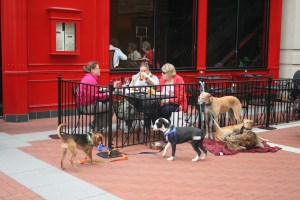 A pup watches the activities while his owners enjoy lunch at Samuel Beckett’s Irish Pub.