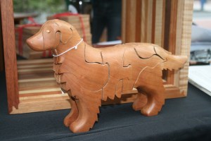 The recently-opened Hardwood Artisans store displayed wooden dog puzzle artwork and dog bowl sets that can be custom-made in a variety of shapes and sizes.