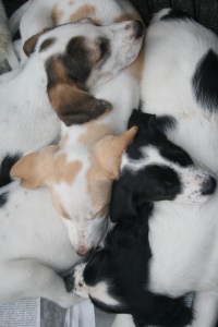 This pile of 10-week-old Pointer mix puppies are adoptable from A Forever Home Rescue Foundation.