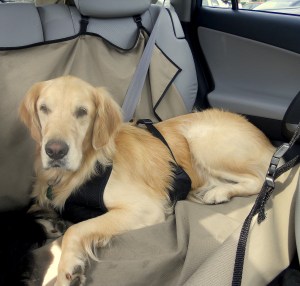 I’ve used seat belts for my dogs ever since I had a convertible with my first Golden. I wasn’t worried about her jumping out of the car, but about her being flung out into traffic if someone hit me.