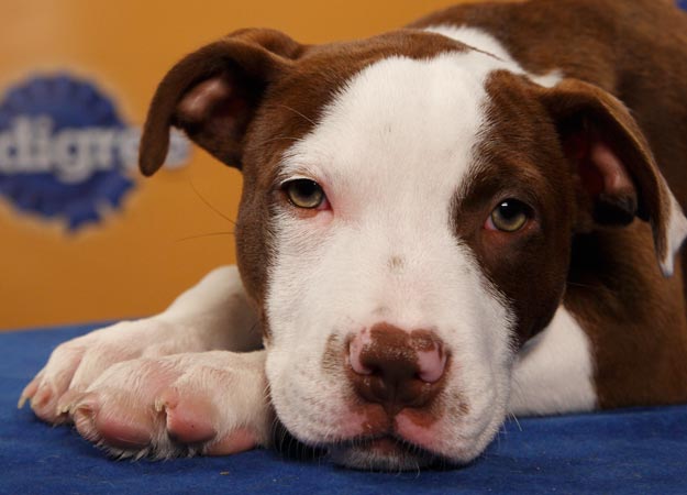 The starting lineup features 20 puppies from rescue organizations and shelters around the country. Pictured is Lucie, an 11-week-old Pit Bull/Collie mix from the Pennsylvania SPCA.