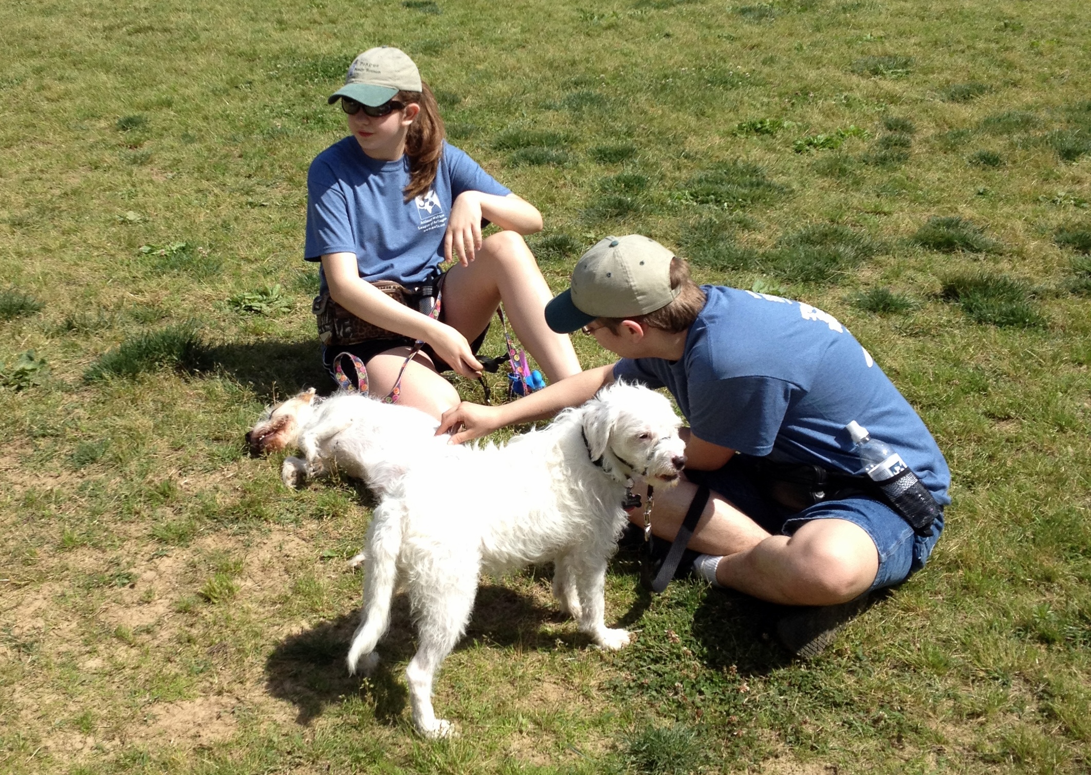 Human walkers were given t-shirts, and the dogs received a bandanna. Water was provided at stations throughout the three mile route. There was a also one mile walk.