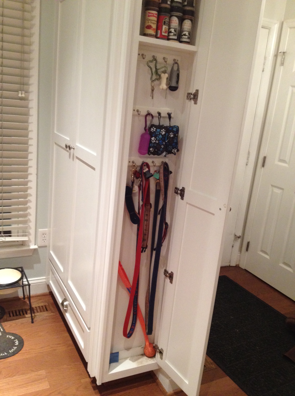 I hated the eyesore of the pile of leashes, keys and other dog-care accessories that I tried to organize with baskets and buckets—but it always just cluttered up the countertop.
