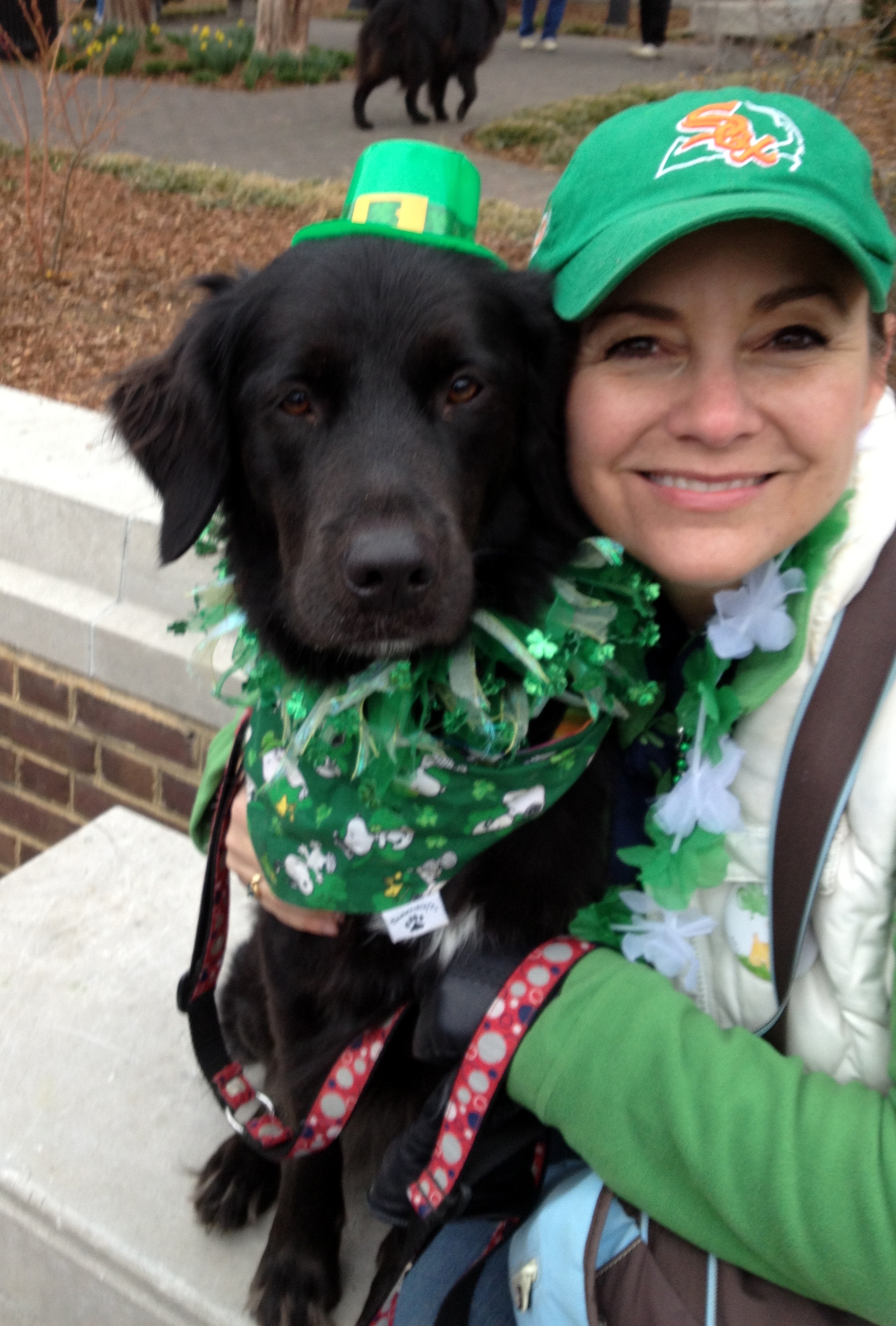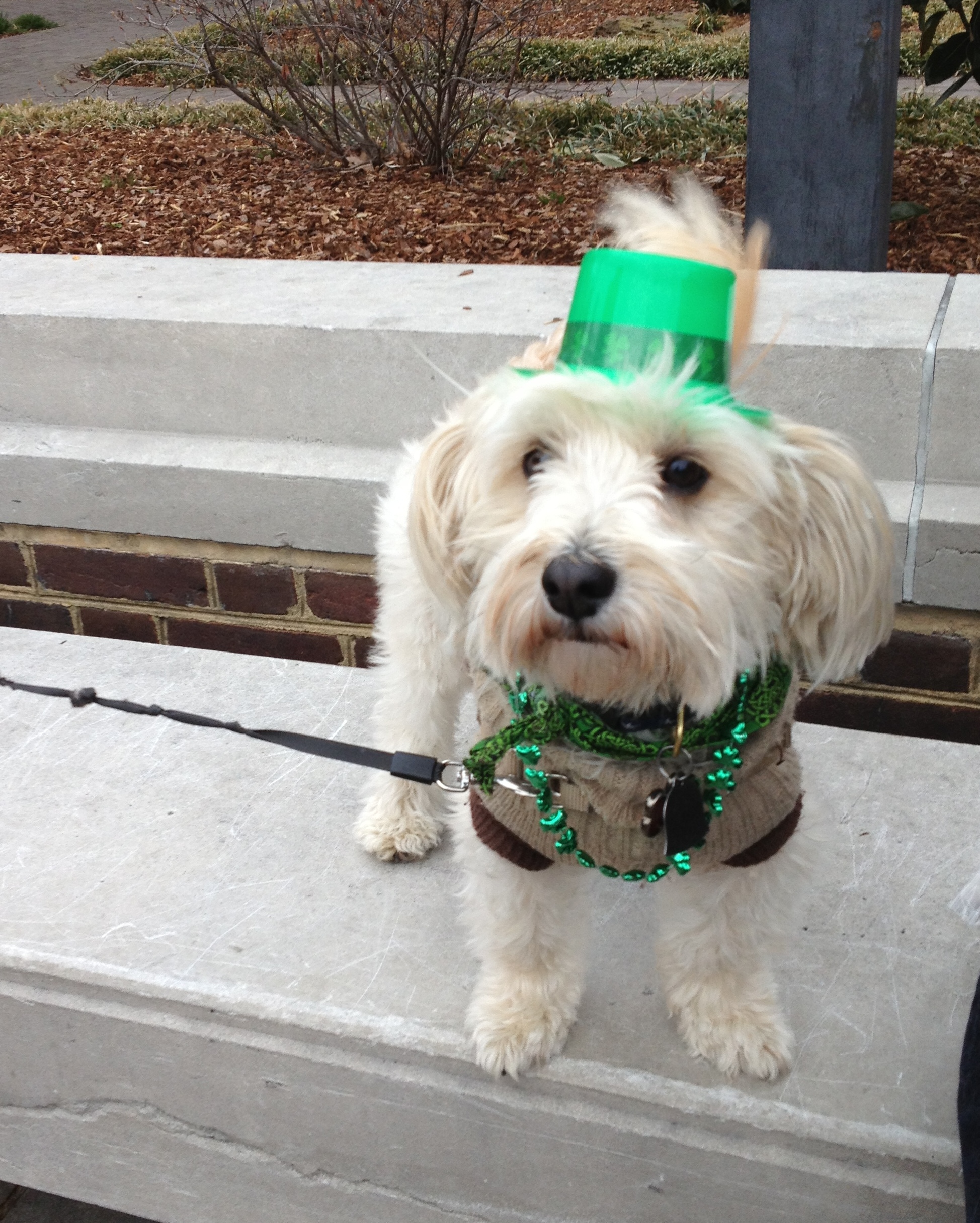 Here are some pictures from last year, when Sundae and I did a little wearin’ o’ the green, along with a lot of other Irish-for-the-day dogs and their owners!