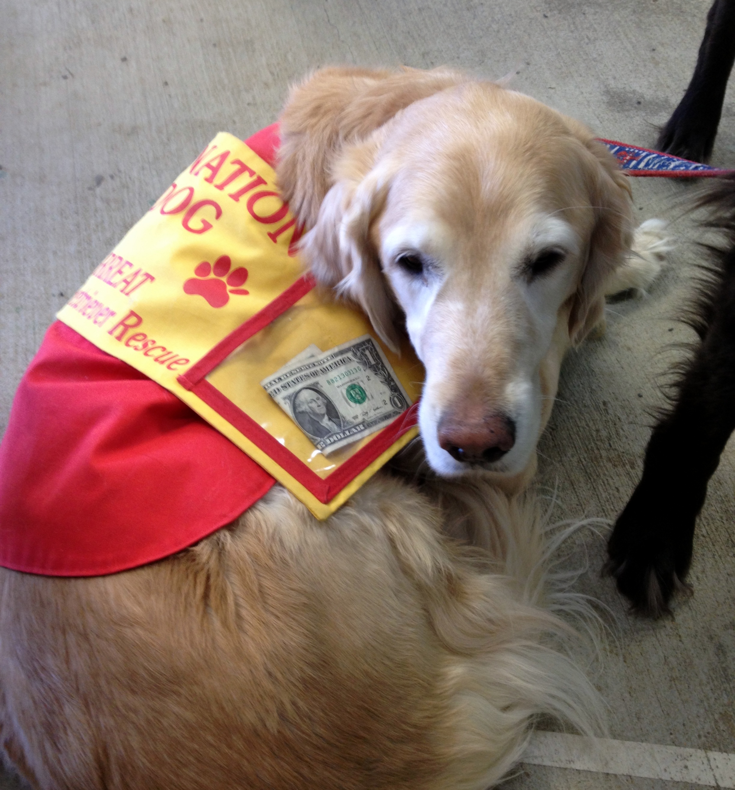 There were about 20 different rescue groups in the adoption zone. Chatham donned a special vest, keeping warm and collecting donations for GRREAT.