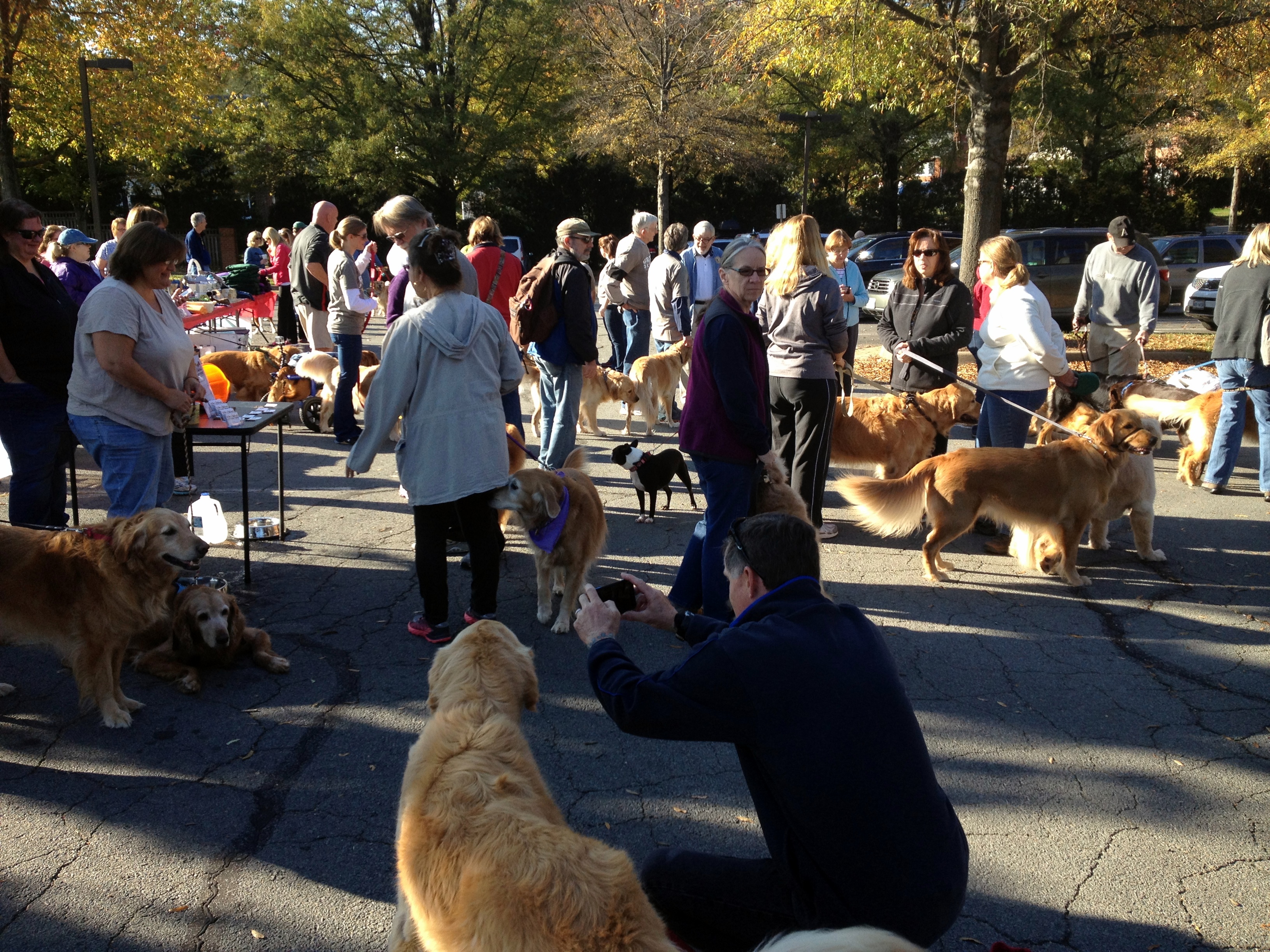 It was a gorgeous day for the GRREAT 3K Walk this morning! Chatham and Sundae joined about a hundred other four-legged pals in a nice stroll around the residential neighborhood behind Weber’s Pet Supermarket in Fairfax. The event was a fundraiser for Golden Retriever Rescue, Education and Training, and there were sponsor booths and vendors to get in some early holiday shopping.