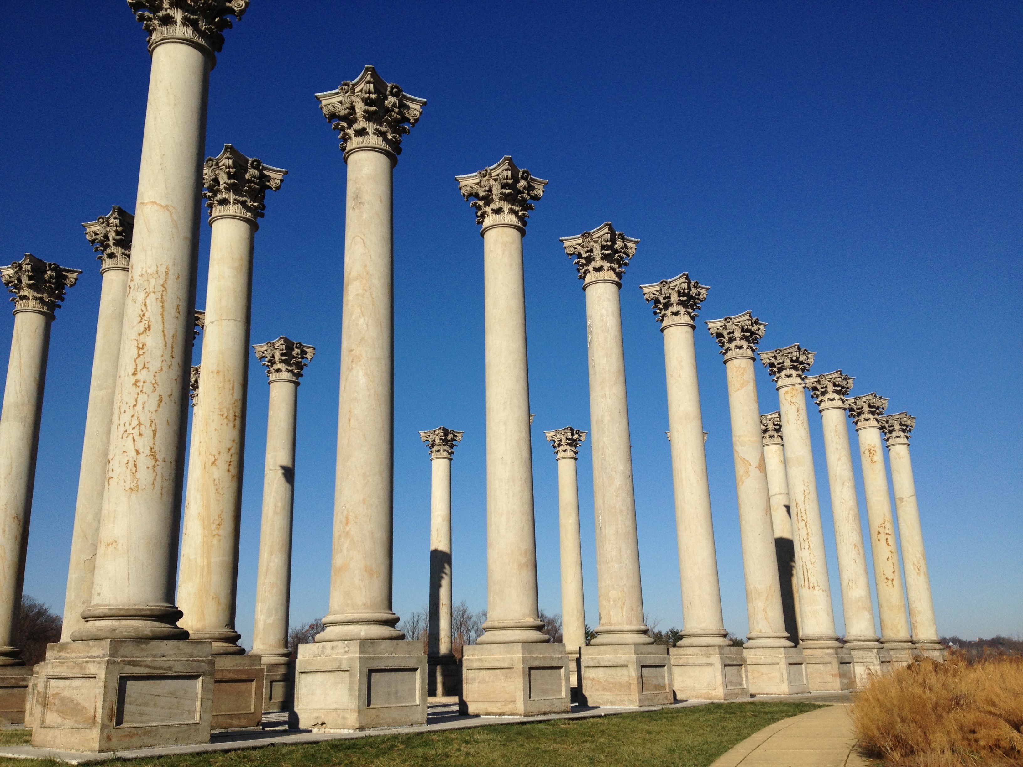 I really enjoyed the National Capitol Columns, which sit in front of a reflecting pool in the middle of a 20-acre meadow. The sandstone columns were constructed in 1828 for the Capitol building, and a display shows them in use during a speech by President Abraham Lincoln.